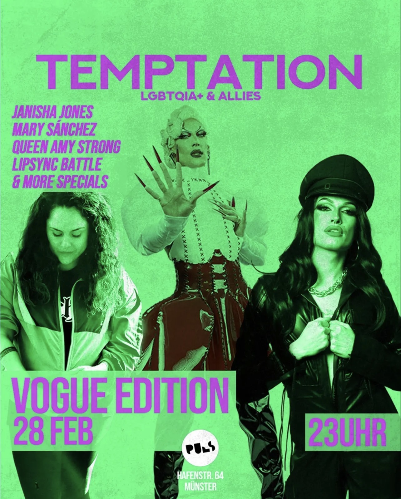 Wichtig: Manche Veranstaltungen im PULS werden von externen Veranstalter:innen organisiert – bei diesen Partys kann es individuelle Dresscode-Vorgaben geben. Bitte achte daher auf die jeweilige Eventbeschreibung, um am Einlass keine Überraschung zu erleben.